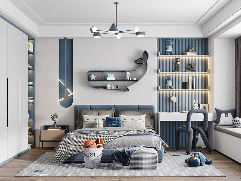 使用蓝色墙漆装饰男孩房间,是很多家庭的选择。不管是使用浅蓝色、还是深蓝色,搭配航天、建筑等元素,为孩子打造一个健康成长的生活空间。