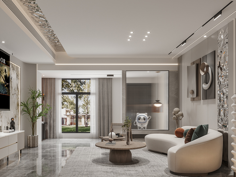 客厅空间简洁的基础搭配富有设计感的软装,呈现出气质儒雅的品质感,细节装饰打破了空间原有的单调。