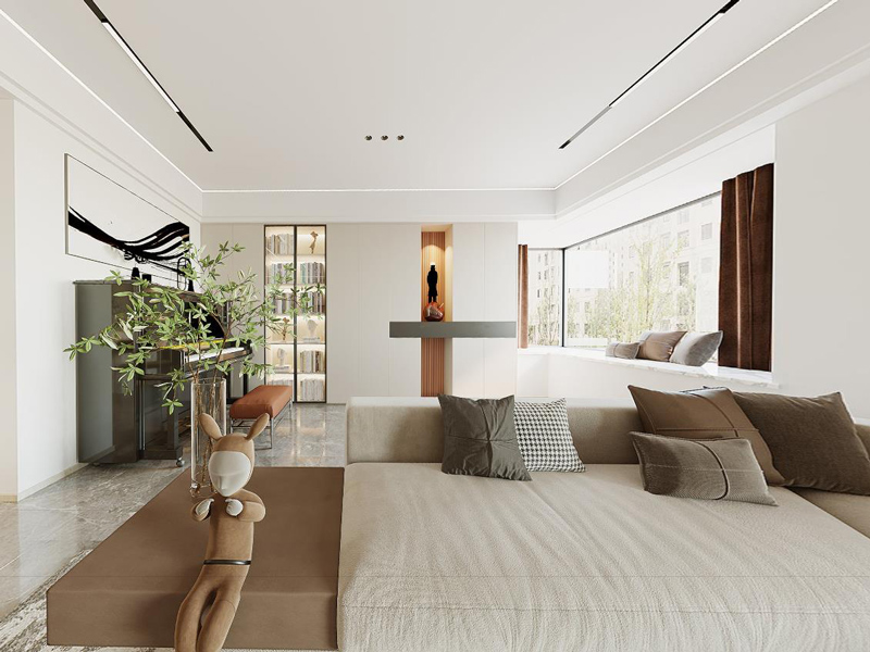 本案例风格定位于现代简约风,力求打造舒适惬意的居住空间,整体呈开放式布局,轻松、自由动线便捷。