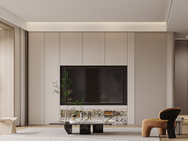 本案例风格定位于现代简约,线条感设计增添空间层次感,保证了美观性,同时提升空间利用率,满足日常生活需求。
