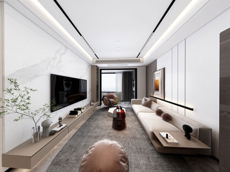 客厅无主灯设计保证空间通透感,让空间视觉更大气,由上至下由浅至深,赋予空间稳重感,敞亮又自然。