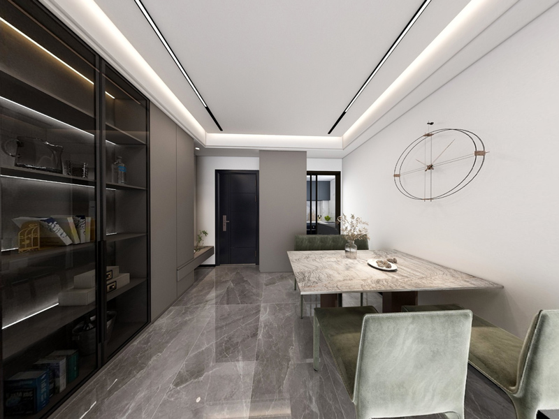 餐厅侧面采用整面收纳柜设计,轻松满足生活收纳需求,开放式的布局方式,就餐氛围更为放松。