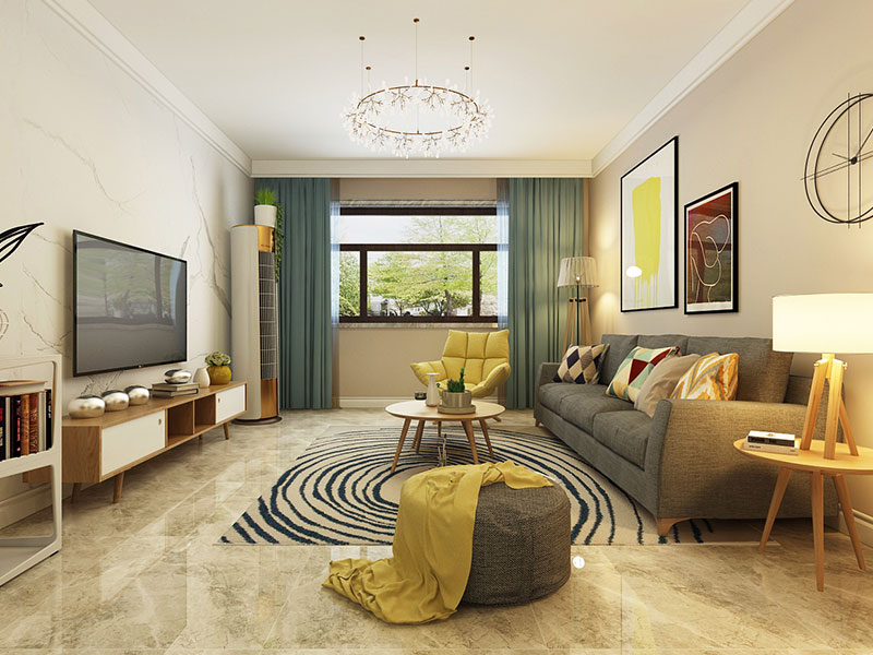 融入成品电视柜、置物架等软装家具,用来收纳小件物品或者摆放书籍、绿植等,营造温馨惬意的居室环境。