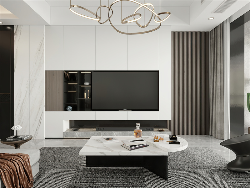 以黑白灰为基底,通过木纹、大理石等材质的多元组合,营造层次。无论是分区设计还是功能复合区域,都实现了实用与美学的平衡。